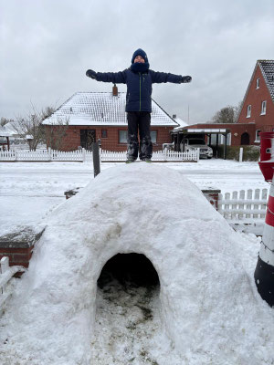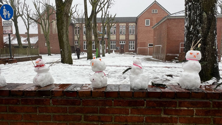 Schneefall auf Borkum sorgt nicht nur für Arbeit, sondern bringt natürlich auch eine Menge Spaß mit sich... hier ein paar schöne Eindrücke von unseren Leserinnen und Lesern. Auch die Notgruppe der Grundschule Borkum beteiligte sich - angelehnt an die Aktion in Hamburg – beim Bau von tollen "Schneemännern"... und auf die Idee mit Kite und Ski auf dem schwarzen Deich zu fahren, muss man auch erstmal kommen!