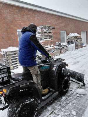 Hafenmitarbeitenden, unterstützt von einem neu angeschafften Kompakttraktor, wurden Bahnsteige und Kaianlagen kontinuierlich geräumt und gegen Glätte gesichert, regelmäßige Lokfahrten hielten die