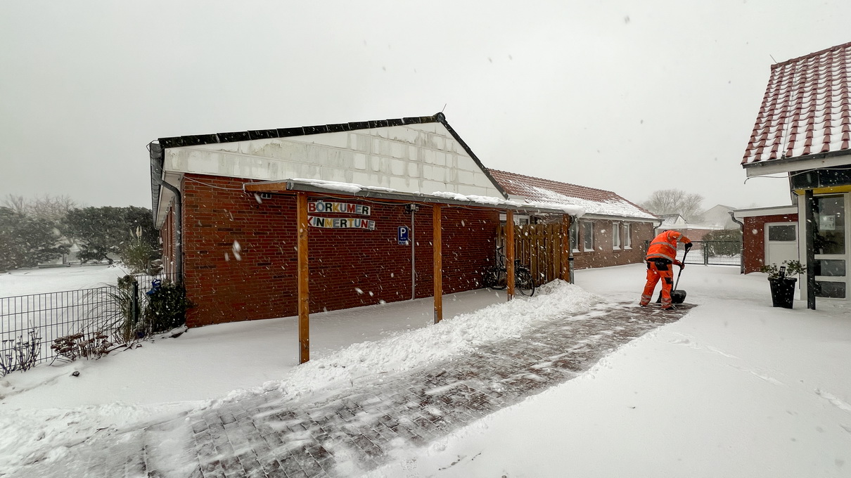 ab/ Der Jahresstart 2026 brachte Borkum eine außergewöhnliche Winterlage mit Schnee, Sturm und Eisglätte, wie sie seit Jahren nicht mehr vorgekommen war. Trotz teils dramatischer Prognosen fiel Sturm „Elli“ schwächer aus als erwartet, führte jedoch mit starkem Schneefall, Wind und Glätte zu deutlichen Einschränkungen des öffentlichen Lebens. Am Freitag, 9. Januar, kam das Inselleben weitgehend zum Erliegen: Schulen, Kitas, touristische Einrichtungen und viele Geschäfte blieben geschlossen, der Verkehr war stark eingeschränkt. Nach dem Schneewochenende verschärfte Eisregen am Montagmorgen, 12. Januar, die Lage nochmals, bevor sich die Situation im Wochenverlauf entspannte. Währenddessen liefen umfangreiche Sicherungs- und Räumarbeiten, kommunale wie private Dienste waren im Dauereinsatz.